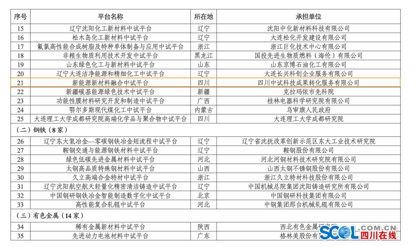 日前,工業(yè)和信息化部科技司公示了首批工業(yè)和信息化部重點(diǎn)培育中試平臺(tái)初步名單。其中,眉山市四川中試科技成果轉(zhuǎn)化服務(wù)有限公司的新能源新材料融合中試平臺(tái)在列。